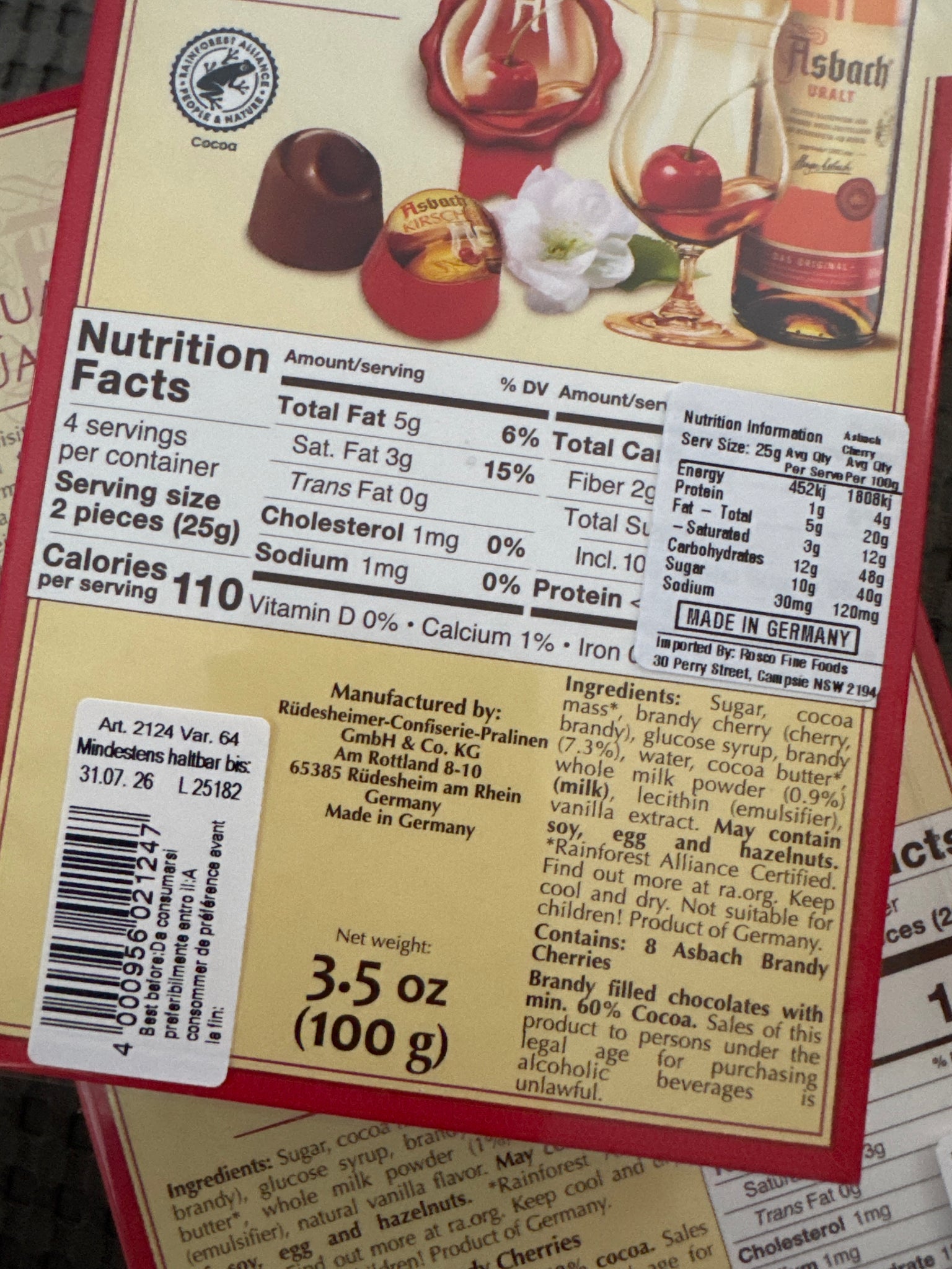 Indulge in the rich and decadent flavors of Asbach Dark Chocolate Brandy Cherries. Made with premium dark chocolate and infused with the finest brandy, these cherries are a luxurious treat for any occasion. Each bite is a perfect blend of sweetness and sophistication, making it an ideal gift or a delightful self-indulgence. Treat yourself to the exquisite taste of Asbach Dark Chocolate Brandy Cherries today.