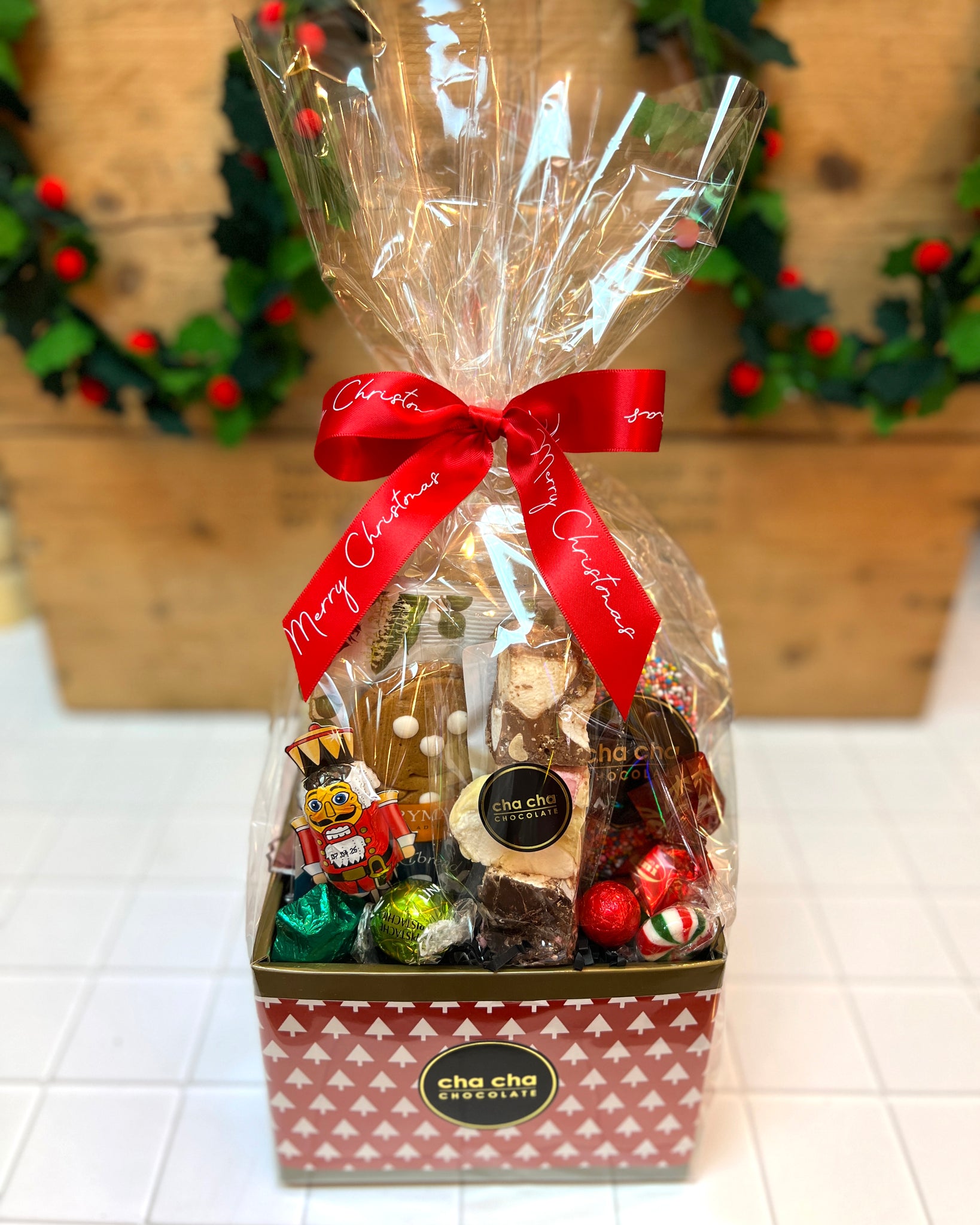 Cha Cha Chocolate products are made on shared equipment with dairy, soy, wheat, gluten, peanuts, tree nuts, and dried fruit. While we take care to avoid cross-contamination, traces may occasionally be present. Please check individual product labels for full ingredients, and feel free to contact us directly to discuss the contents of this hamper: 07 4152 4204.