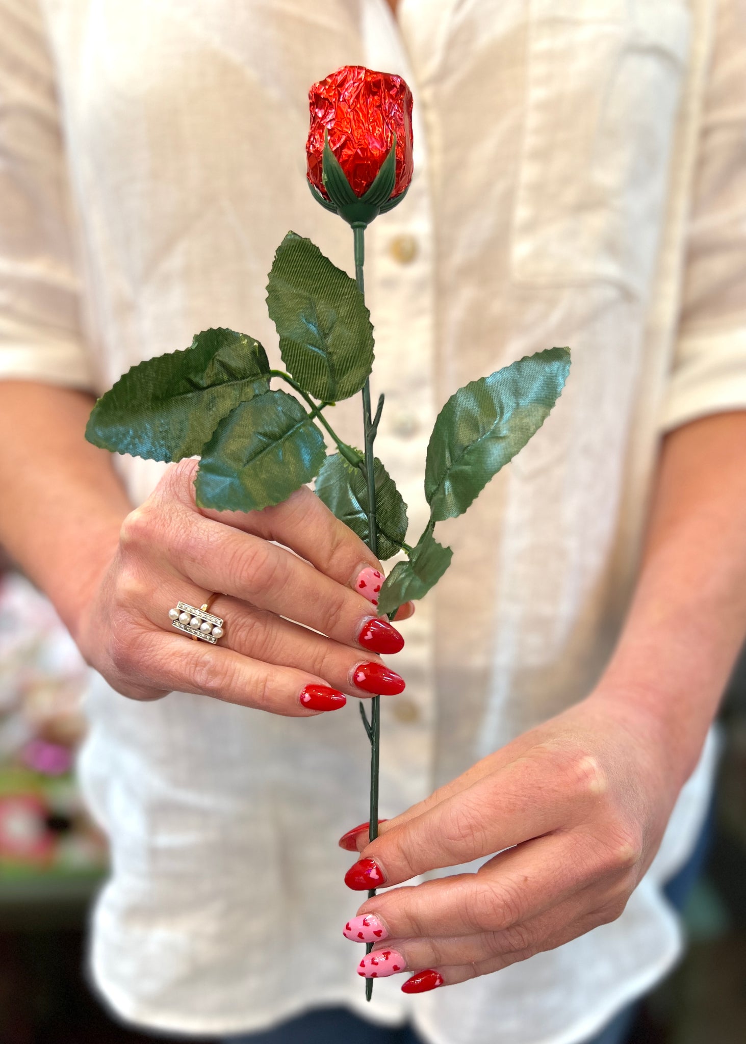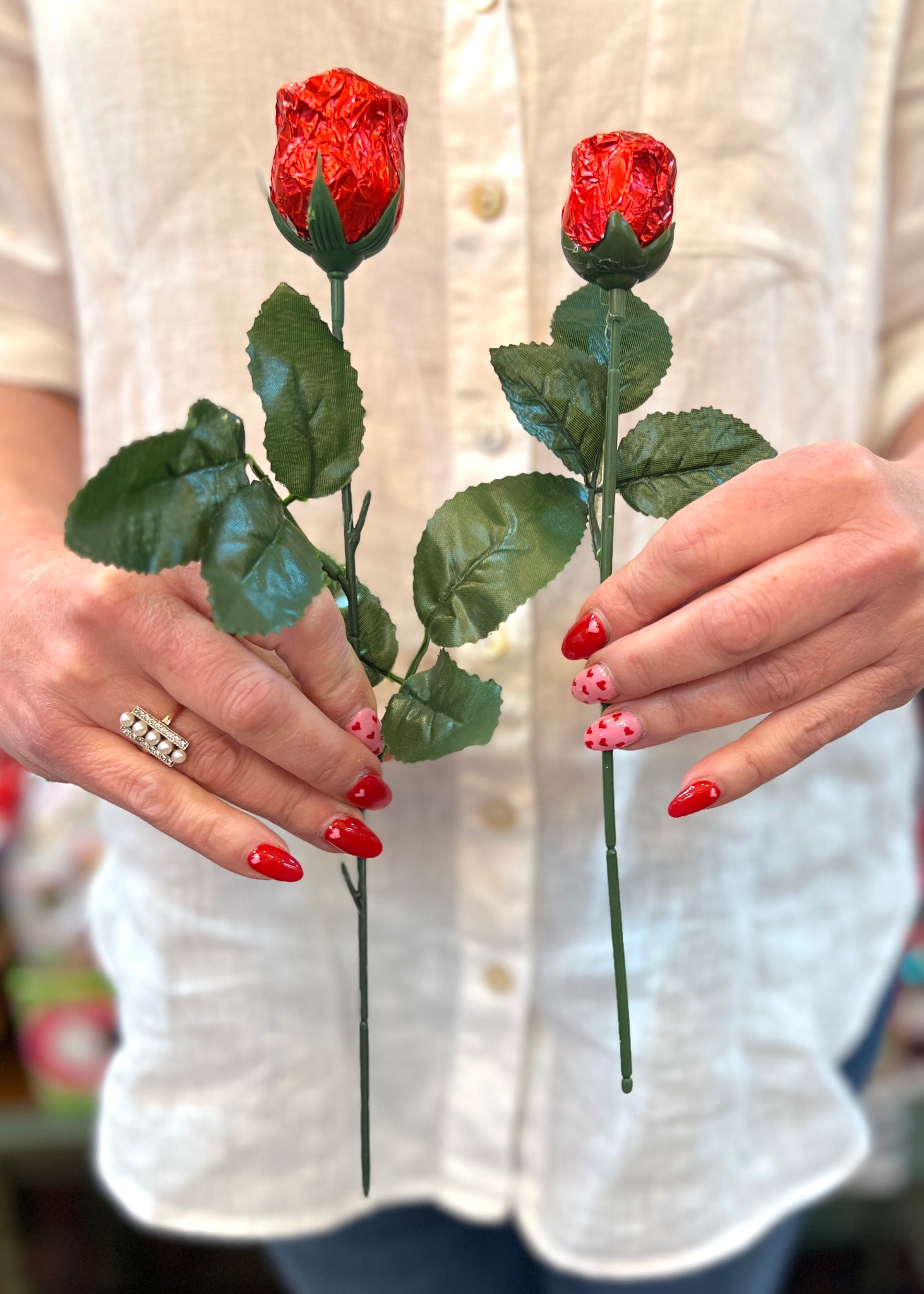 So why not join the best of both worlds and give your Valentine Chocolate Roses. Made from delicious milk chocolate and wrapped in red foil, these beauties will make anyone fall in love.